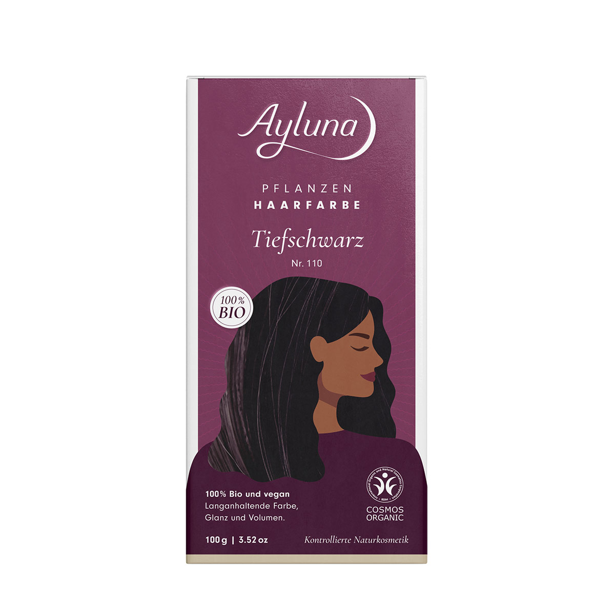 Mit der Pflanzenhaarfarbe Haare natürlich tiefschwarz färben ❀ Vegan, ohne Duftstoffe, ohne Chemie und tierversuchsfrei ✔ Ayluna Bio Haarfarbe ▻ kaufen.