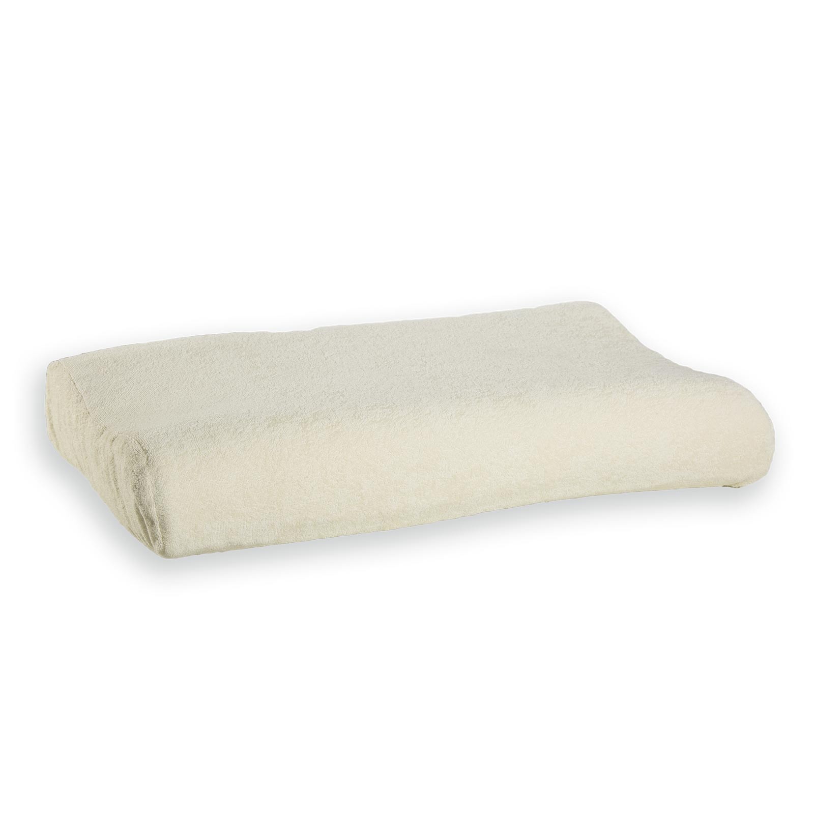 Latex-Nackenstützkissen - höhenregulierbar mit 2cm hoher Latexplatte ✔ Ergonomisch geformt & nachhaltig ✔ Mit Frotteebezug aus 100% Bio-Baumwolle ✔